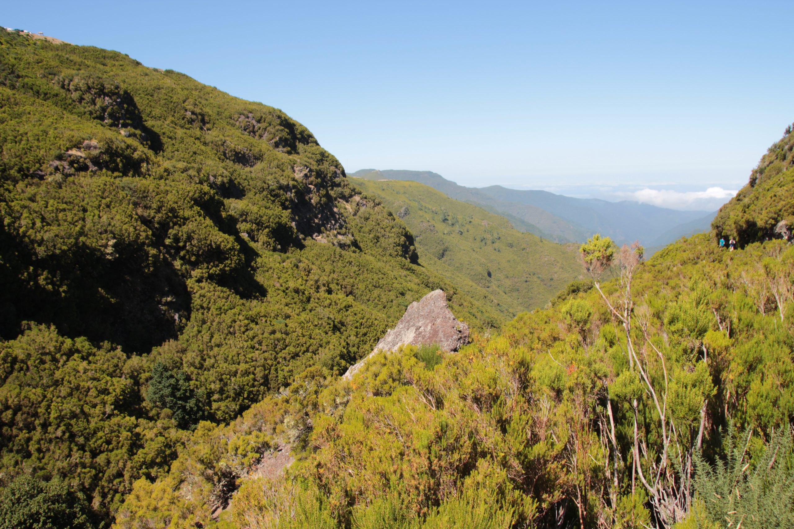 erleben wir bei unseren Wanderungen mal im Nebel, mal kühl über den Wolken, mal schwitzend in der heißen Sonne; immer staunend über die natürliche Landschaftsvielfalt dieser Insel. Krönender Abschluß ist unsere Wanderung in der westlichen Hochebene Paúl da Serra. Zunächst geht es von Rabacal aus durch den Lorbeer- und Baumheide-Urwald entlang der Levada do Risco. Mit den Levadas (künstlich angelegte Wasserkanäle) wird das Wasser aus dem niederschlagsreichen Norden in den regenarmen Süden der Insel geleitet. Aus den moosbedeckten Felswänden sprudeln hier die Quellen und am Ende des Weges stürzt ein mächtiger Wasserfall ins Tal. Einmal mehr singen wir ein Hohelied auf den Erfinder der Digitalkamera.